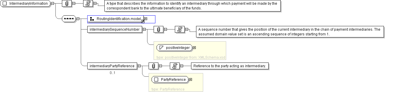 | Documentation | A type that describes the information to identify an intermediary through which payment will be made by the correspondent bank to the ultimate beneficiary of the funds. |