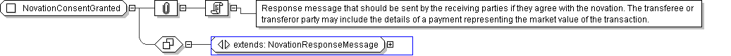 | Documentation | Response message that should be sent by the receiving parties if they agree with the novation. The transferee or transferor party may include the details of a payment representing the market value of the transaction. |