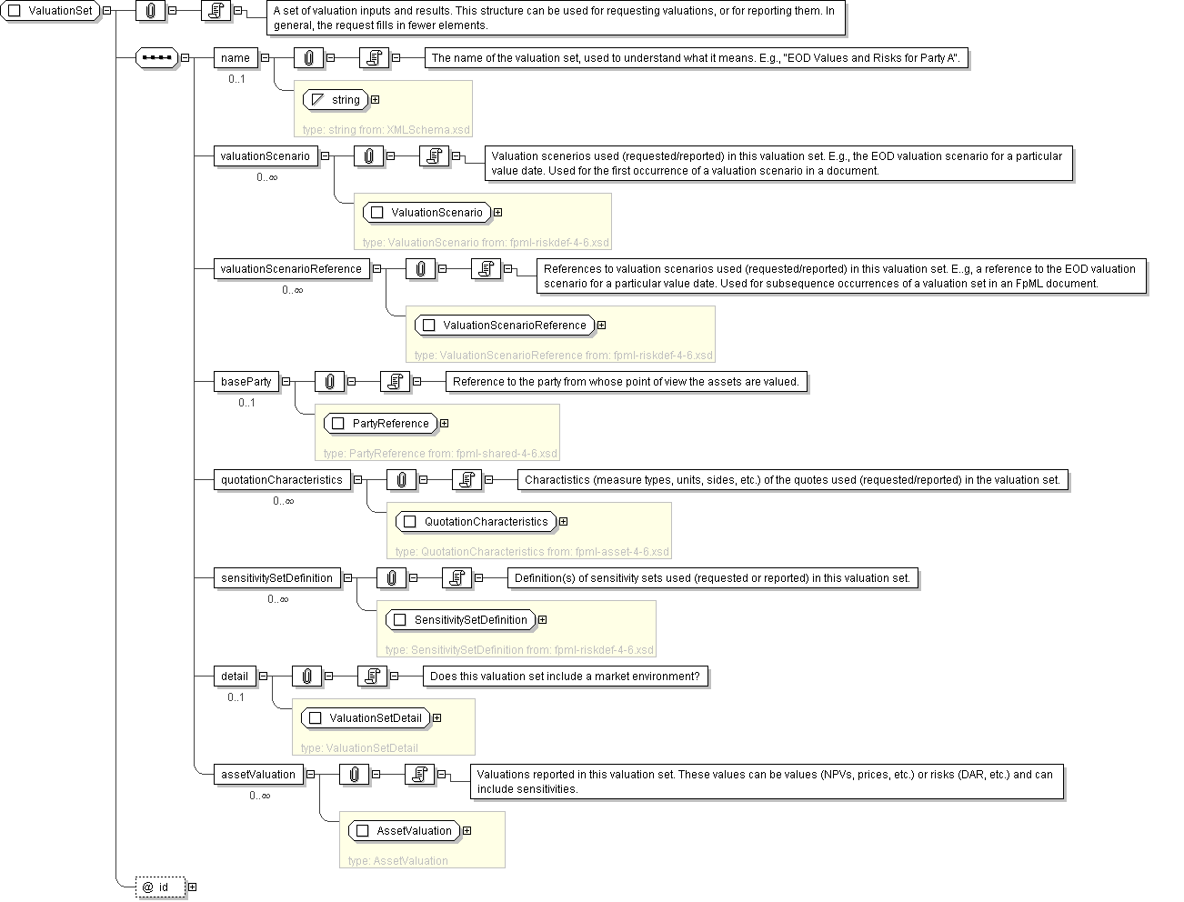 | Documentation | A set of valuation inputs and results. This structure can be used for requesting valuations, or for reporting them. In general, the request fills in fewer elements. |