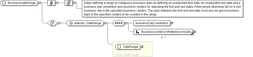 Documentation A type defining a range of contiguous business days by defining an unadjusted first date, an unadjusted last date and a business day convention and business centers for adjusting the first and last dates if they would otherwise fall on a non business day in the specified business centers. The days between the first and last date must also be good business days in the specified centers to be counted in the range.