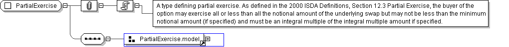 | Documentation | A type defining partial exercise. As defined in the 2000 ISDA Definitions, Section 12.3 Partial Exercise, the buyer of the option may exercise all or less than all the notional amount of the underlying swap but may not be less than the minimum notional amount (if specified) and must be an integral multiple of the integral multiple amount if specified. |