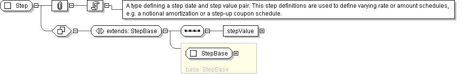 Documentation A type defining a step date and step value pair. This step definitions are used to define varying rate or amount schedules, e.g. a notional amortization or a step-up coupon schedule.