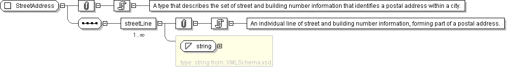 | Documentation | A type that describes the set of street and building number information that identifies a postal address within a city. |