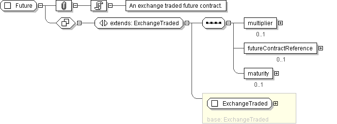 | Super-types: | Asset < IdentifiedAsset (by extension) < UnderlyingAsset (by extension) < ExchangeTraded (by extension) < Future (by extension) |