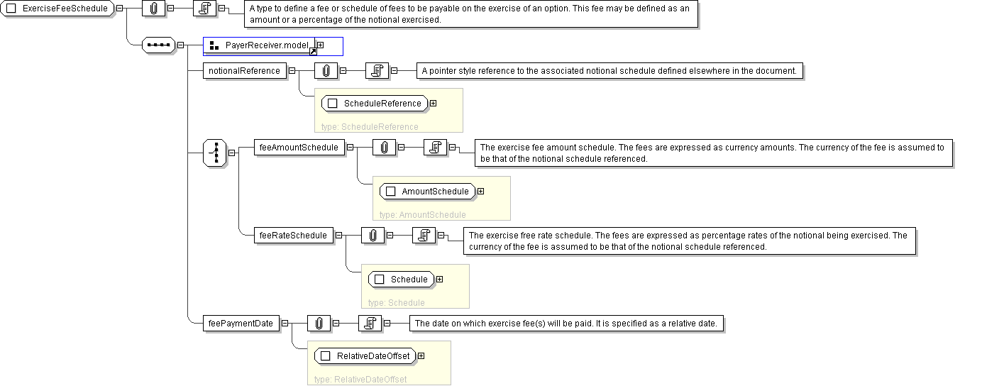 | Documentation | A type to define a fee or schedule of fees to be payable on the exercise of an option. This fee may be defined as an amount or a percentage of the notional exercised. |