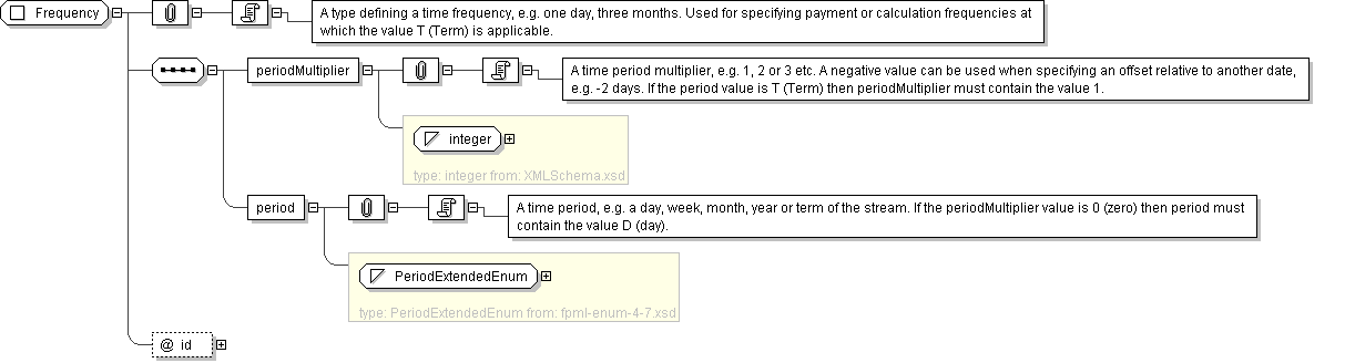 Documentation A type defining a time frequency, e.g. one day, three months. Used for specifying payment or calculation frequencies at which the value T (Term) is applicable.