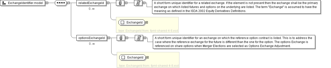 'A short form unique identifier for a related exchange. If the element is not present then the exchange shall be the primary exchange on which listed futures and options on the underlying are listed. The term \"Exchange\" is assumed to have the meaning as defined in the ISDA 2002 Equity Derivatives Definitions.'