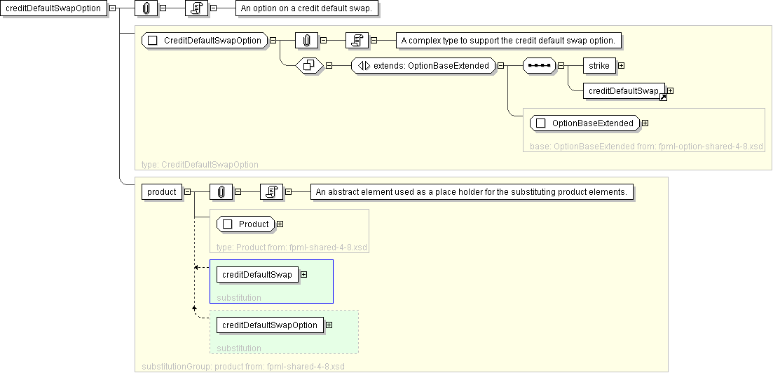<xsd:element name="creditDefaultSwapOption" type=" CreditDefaultSwapOption " substitutionGroup="product"/>