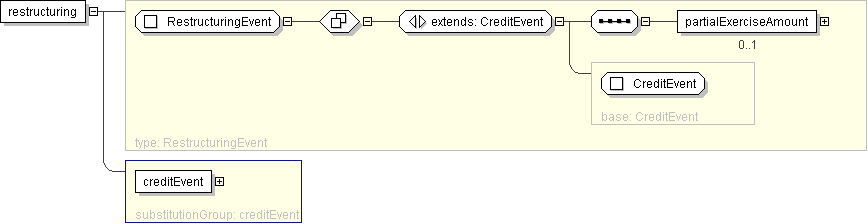 <xsd:element name="restructuring" type=" RestructuringEvent " substitutionGroup="creditEvent"/>