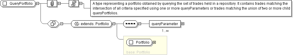 | Documentation | A type representing a portfolio obtained by querying the set of trades held in a repository. It contains trades matching the intersection of all criteria specified using one or more queryParameters or trades matching the union of two or more child queryPortfolios. |
