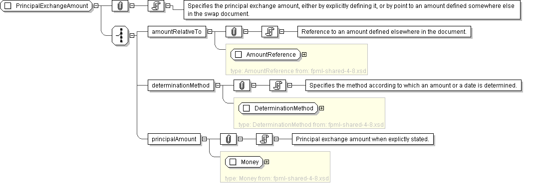 | Documentation | Specifies the principal exchange amount, either by explicitly defining it, or by point to an amount defined somewhere else in the swap document. |
