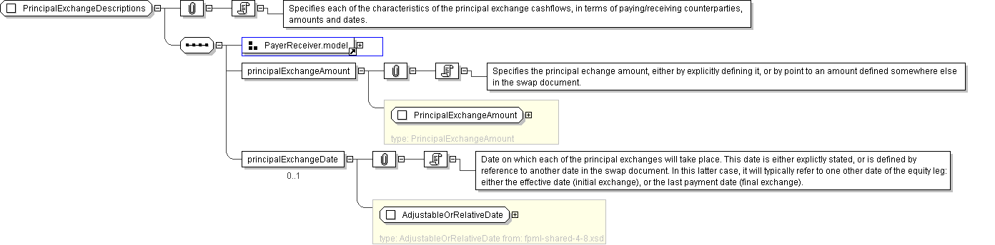 | Documentation | Specifies each of the characteristics of the principal exchange cashflows, in terms of paying/receiving counterparties, amounts and dates. |