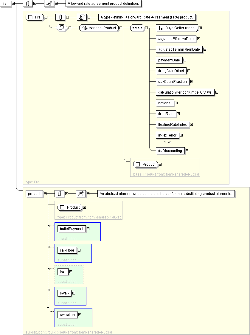 <xsd:element name="fra" type=" Fra " substitutionGroup="product"/>