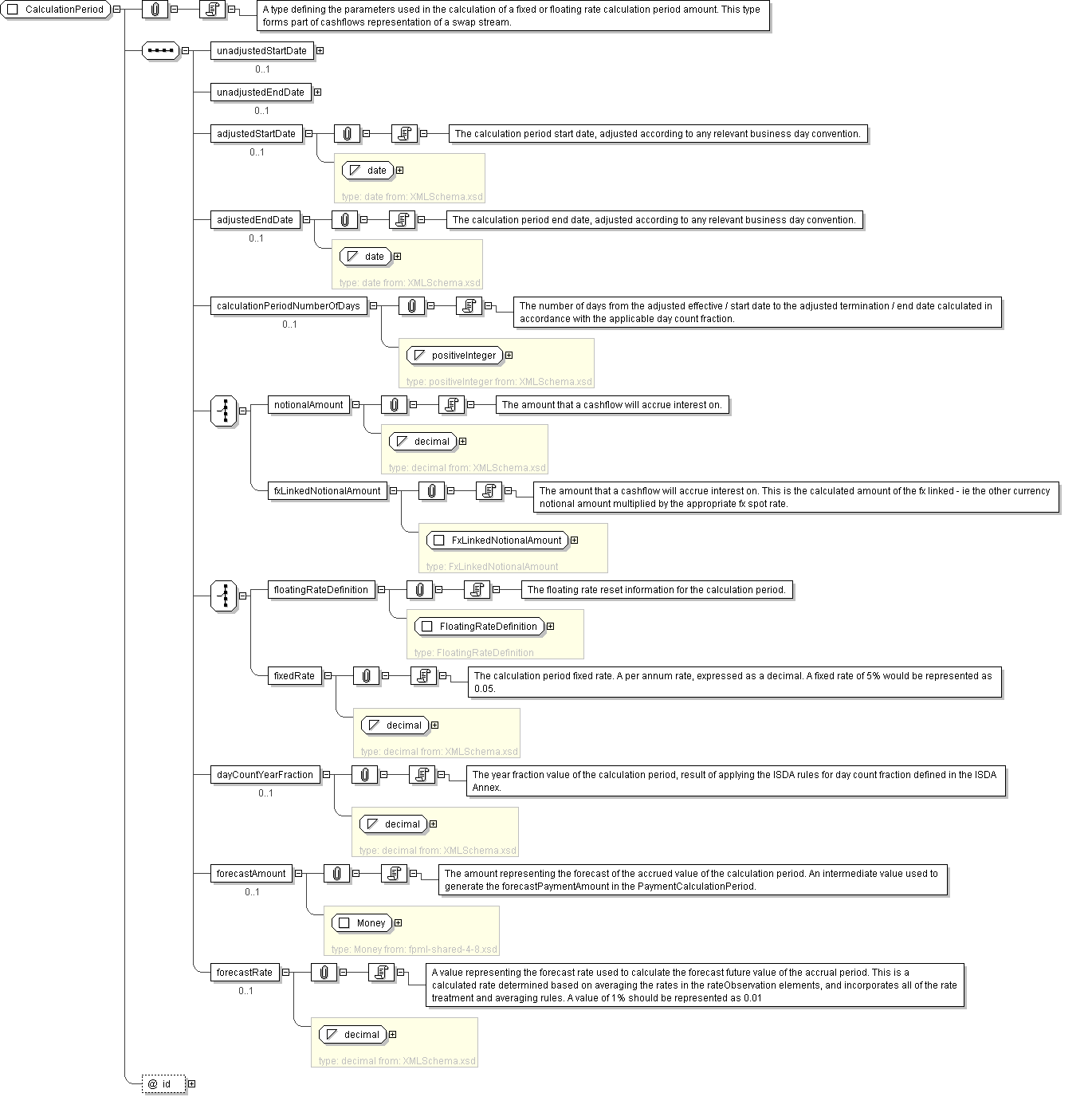 | Documentation | A type defining the parameters used in the calculation of a fixed or floating rate calculation period amount. This type forms part of cashflows representation of a swap stream. |