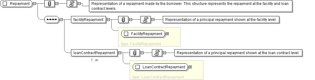 | Documentation | Representation of a repayment made by the borrower. This structure represents the repayment at the facility and loan contract levels. |