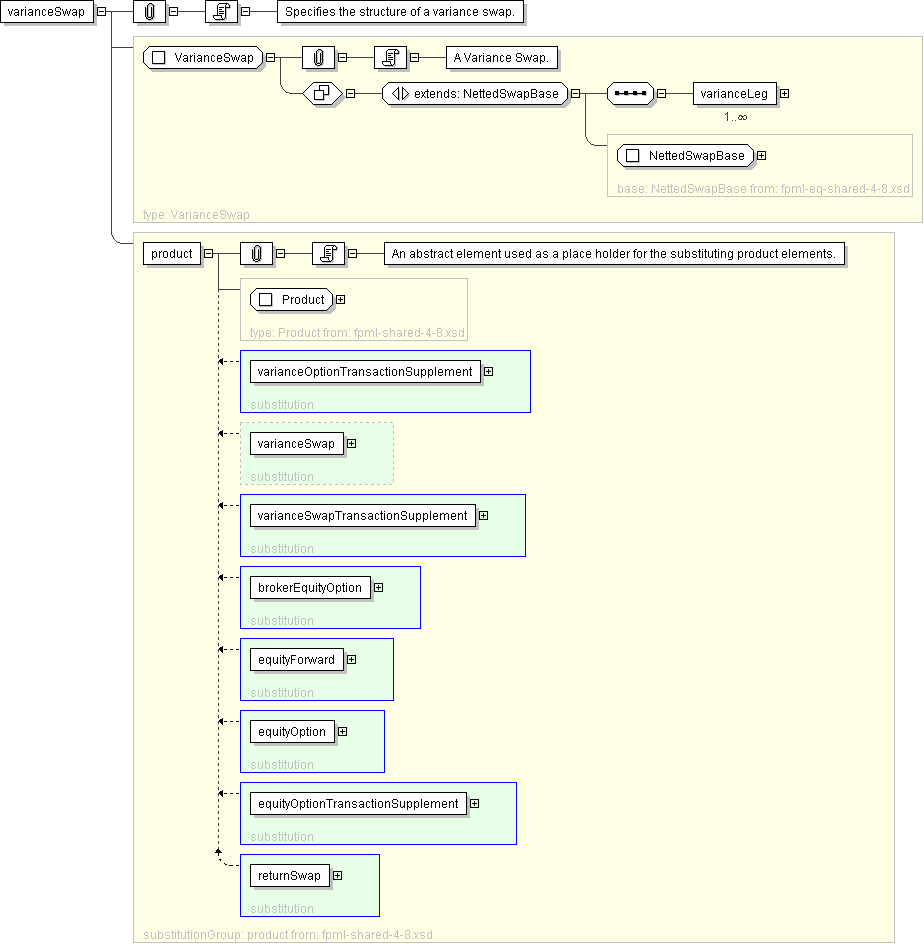 <xsd:element name="varianceSwap" type=" VarianceSwap " substitutionGroup="product"/>