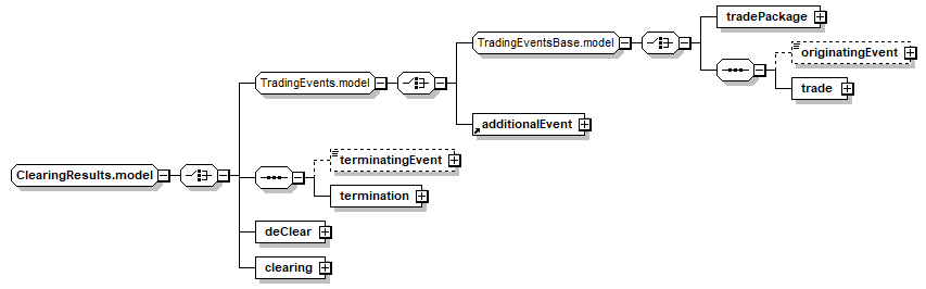 tradePackage | (originatingEvent?, trade) | additionalEvent | (terminatingEvent?, termination) | deClear | clearing |