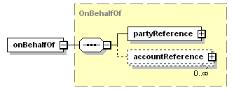 Indicates which party (or parties) (and accounts) a trade or event is being processed for. Normally there will only be a maximum of 2 parties, but in the case of a novation there could be a transferor, transferee, remaining party, and other remaining party. Except for this case, there should be no more than two onABehalfOf references in a message.